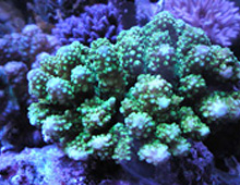 飼育のし易いサンゴ。グリーンタイプ、レッドタイプ、珍しいものでレッドとグリーンのツートンがある。
